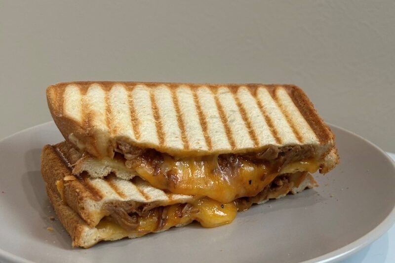 食パンに具材をぎゅっと挟んで焼いたサンドイッチです。