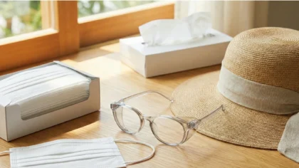 洗顔後はすぐに保湿し、化粧水・乳液・クリームでうるおいを補います。乾燥しやすい頬や目まわりは重ね塗りが推奨されます。スキンケア製品は、香料やアルコールの少ない低刺激性のものを選びましょう。新しい化粧品は二の腕の内側で試すと安心です。基本的なケアを続けることで、肌の負担を減らし、花粉の刺激に備えやすくなります。