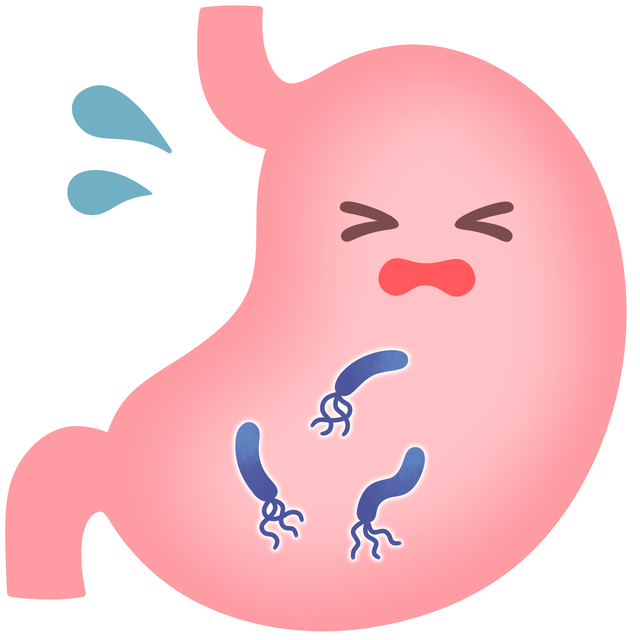また、ピロリ菌によって慢性胃炎、萎縮性胃炎などを発症し、胃がんへ移行したり、胃酸の防御機能が障害されて、胃・十二指腸潰瘍を発症したりすることがあります。これらに加えて、貧血、下血、吐血、体重減少といった症状があらわれることもあります。